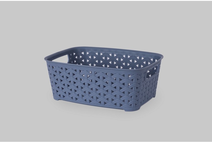 Корзина без крышки 1,6 л (K9-121) — компактная пластиковая корзина для хранения мелочей, аксессуаров, бытовых принадлежностей. Цвет: серо-голубой.