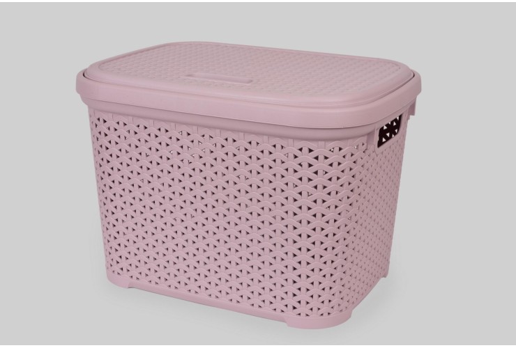 Корзина с крышкой 30 л (K14-805) — вместительная корзина для хранения дома. Цвет: пудровый. Крышка защищает содержимое от пыли и помогает поддерживать порядок.