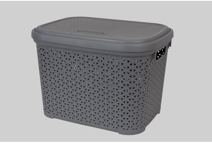Корзина с крышкой 30 л (K14-130) — вместительная корзина для хранения дома. Цвет: серый. Крышка защищает содержимое от пыли и помогает поддерживать порядок.