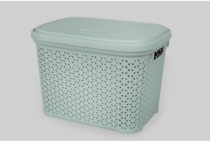 Корзина с крышкой 30 л (K14-374) — вместительная корзина для хранения дома. Цвет: светло-фисташковый. Крышка защищает содержимое от пыли и помогает поддерживать порядок.