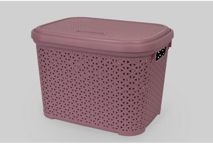 Корзина с крышкой 30 л (K14-803) — вместительная корзина для хранения дома. Цвет: тёмно-пудровый. Крышка защищает содержимое от пыли и помогает поддерживать порядок.