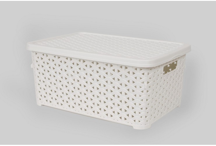 Корзина с крышкой низкая 6 л молочный (K12-010)