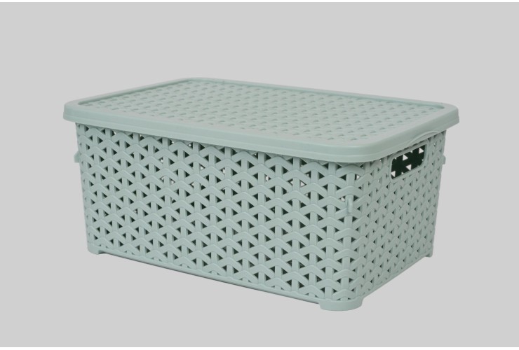 Корзина с крышкой низкая 6 л (K12-374) — удобная пластиковая корзина для хранения дома. Цвет: светло-фисташковый. Крышка защищает содержимое от пыли и помогает аккуратно организовать пространство.